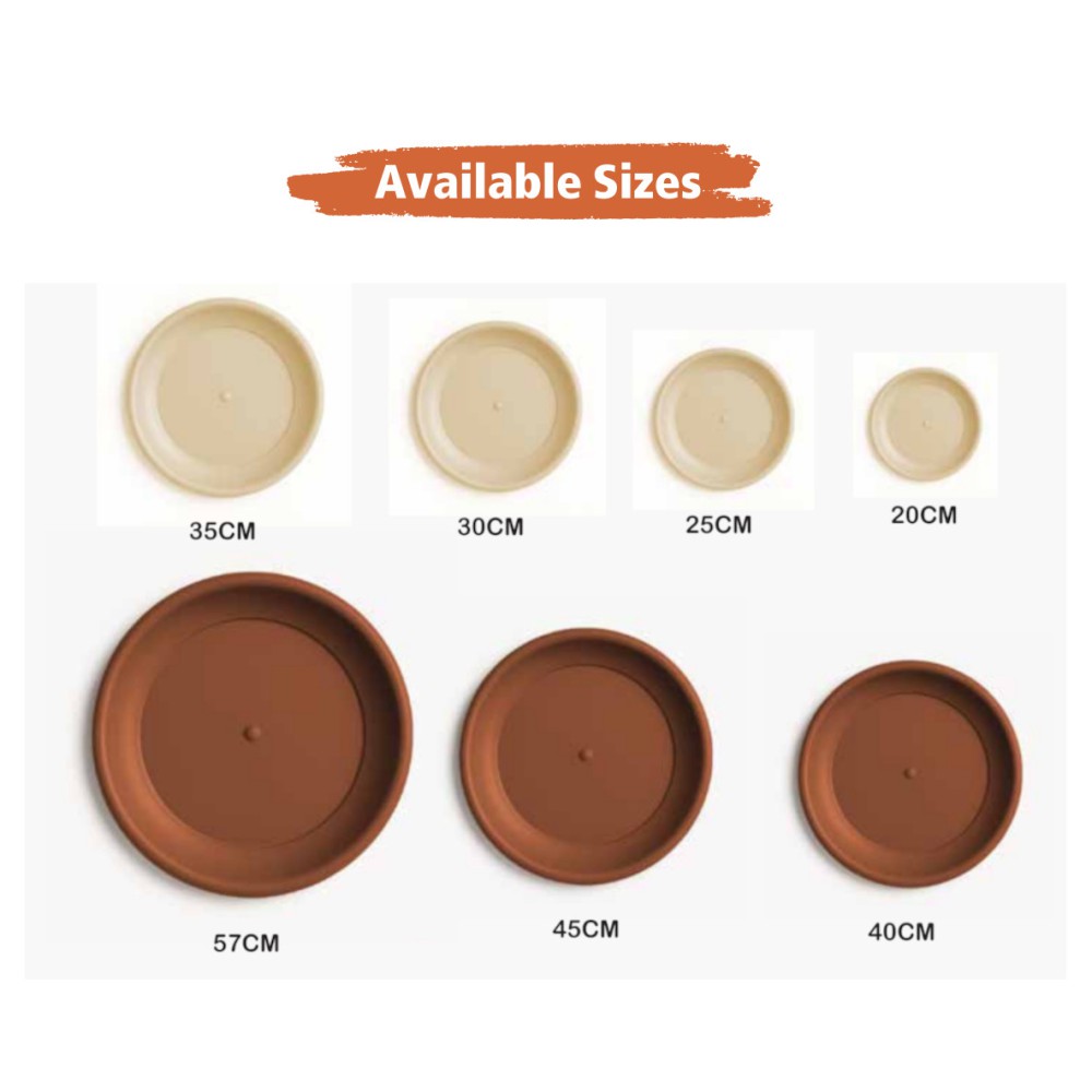 الشكل والتصميم: طبق دائري ذو حافة خارجية مرتفعة قليلاً لتجميع المياه بشكل فعال. القاعدة الداخلية مصممة لتكون مسطحة أو ذات حلقات طفيفة (كما يظهر في صورة طبق التراكوتا) لتحسين استقرار القصيص.
