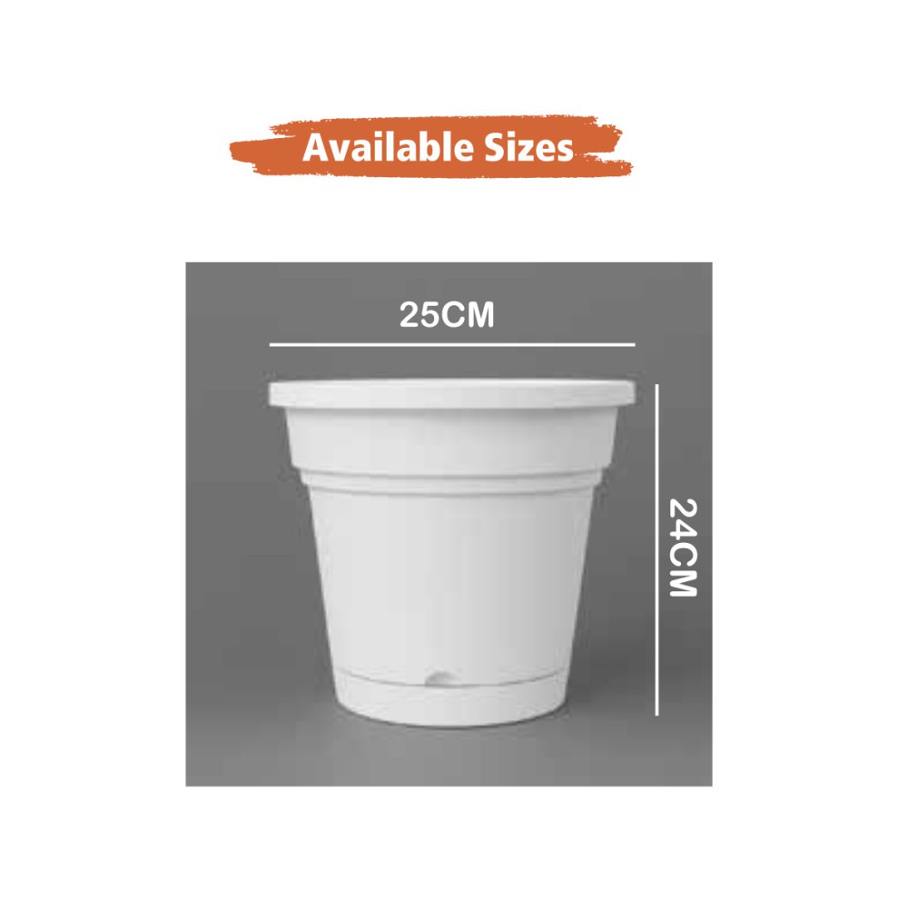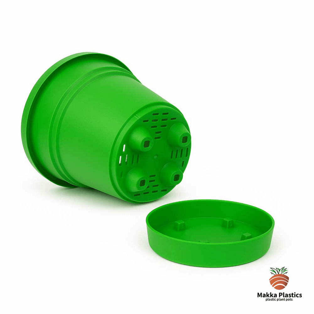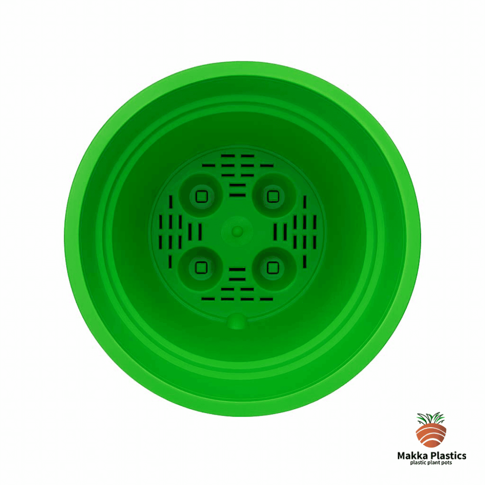 • وحدة تجميع المياه: القاعدة السفلية السميكة تعمل كطبق تجميع مياه (Built-in Saucer) مع منفذ تصريف مركزي صغير (قد يكون ثقباً جاهزاً أو قابلاً للثقب) لتسهيل التخلص من الماء الزائد إذا لزم الأمر.